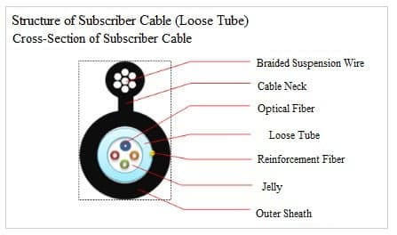 - Cable jacket ensures solid protection for cable core (buffer tubes), hanging wire steel twist in installation operation.